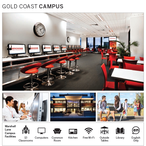 สถาบัน Browns English Language College มีสองแคมปัสได้แก่ Brisbane และ Gold Coast เป็นโรงเรียนขนาดกลางเหมาะสำหรับนักเรียนที่ต้องการไปเรียนเพื่อพัฒนาภาษาและหาประสบการณ์ในการไปทำกิจกรรมต่างๆนอกสถานที่ กิจกรรมต่างๆจะทำให้นักเรียนได้พัฒนาทักษะ และภาษาได้อย่างมีประสิทธิภาพ